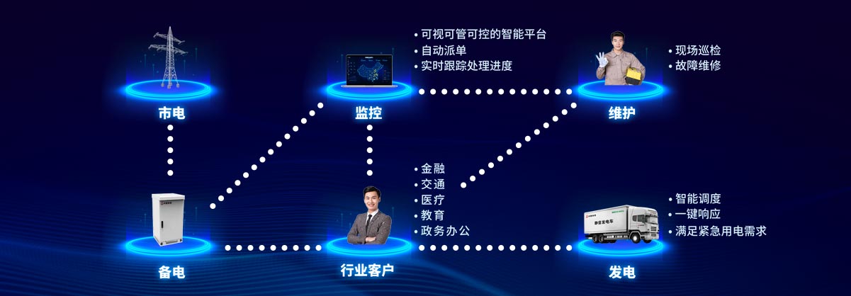 針對市電不穩(wěn)、突發(fā)斷電等情況,鐵塔備電依托中國鐵塔可視、可管、可控的智能監(jiān)控平臺、屬地成熟的建維能力,向金融、交通、醫(yī)療等有高可靠用電需求的行業(yè)客戶,提供通信級的備電、發(fā)電、監(jiān)控、維護(hù)等四位一體的綜合服務(wù)解決方案。